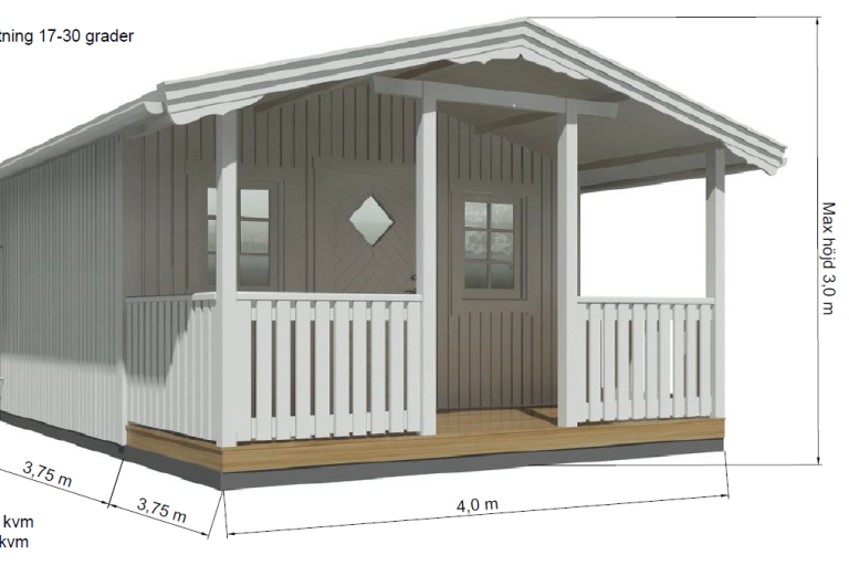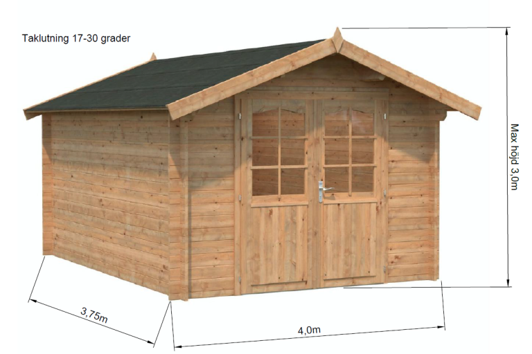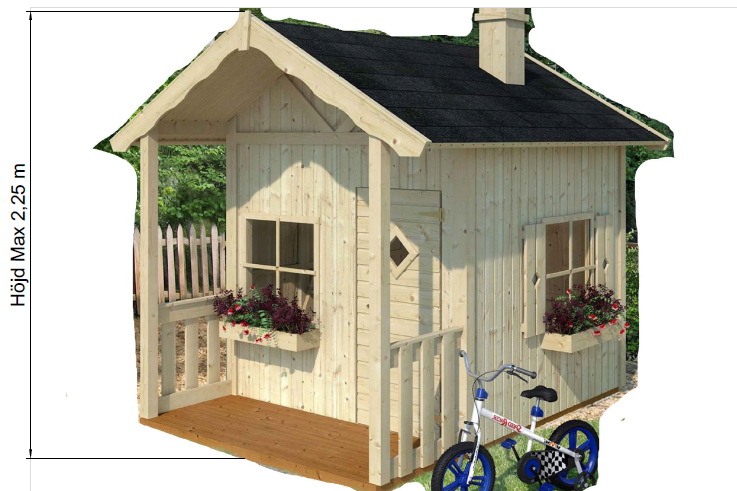 Lekstuga får vara max 3 kvm och max nockhöjd 2,25 kvm.
