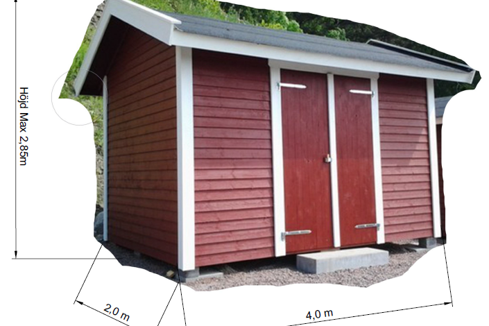 Förråd får vara max 8 kvm och nockhöjd max 2,85 meter.