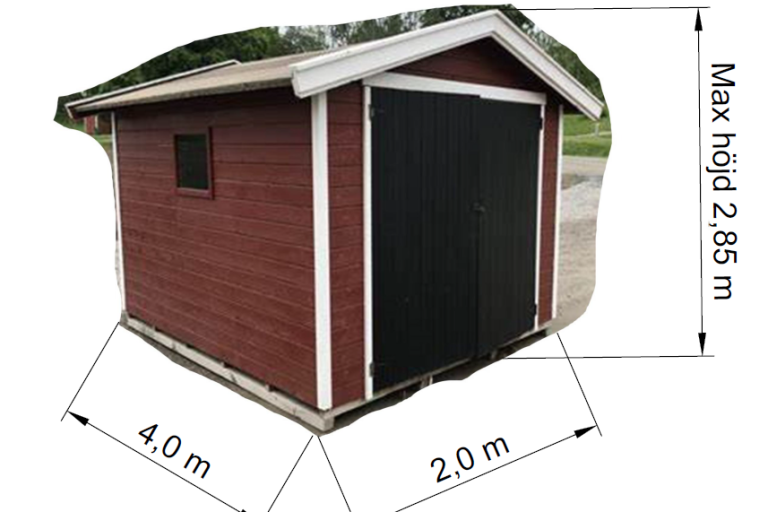 Får vara max 12 kvm och nockhöjd max 2,85 meter. Placeras så den inte stör dina grannar (kolla med din granne) och minst 0,5 meter från tomtgränsen.
